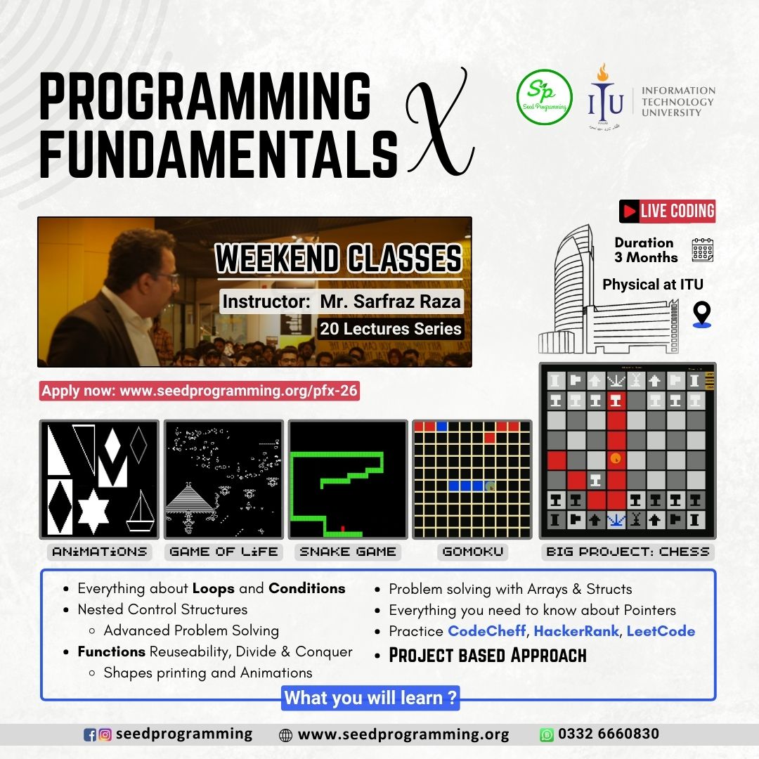 The Course will be taught by Sarfraz Raza (Teaching Fellow – at ITU and the CEO of Seed Programming).