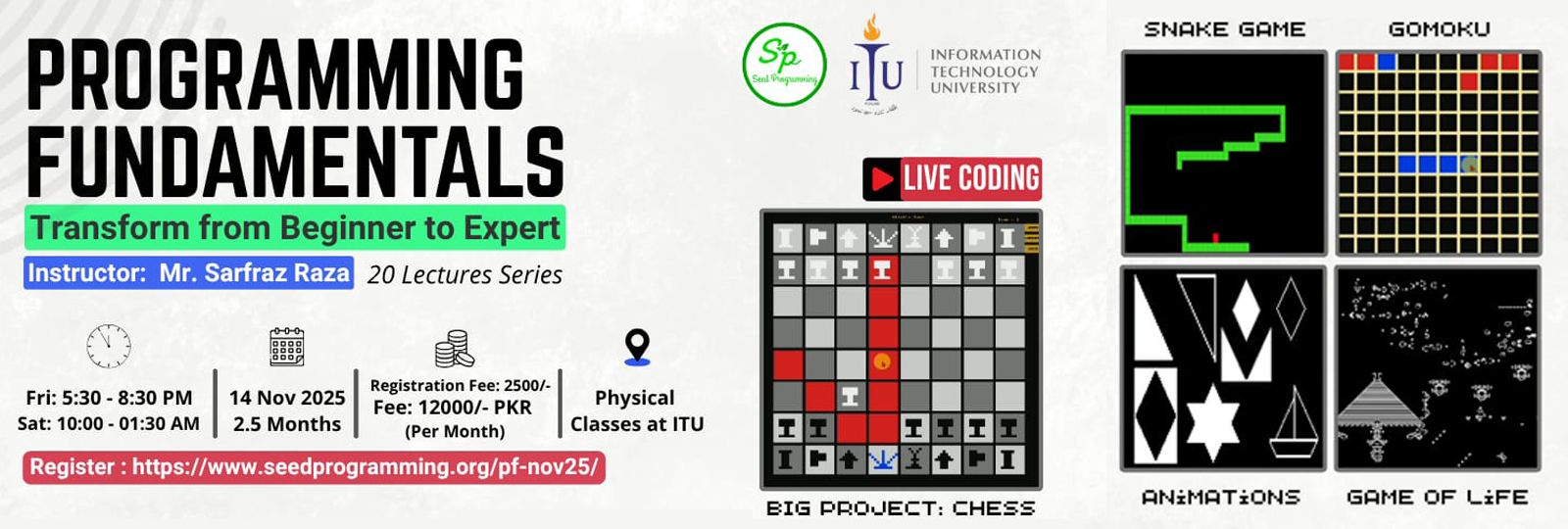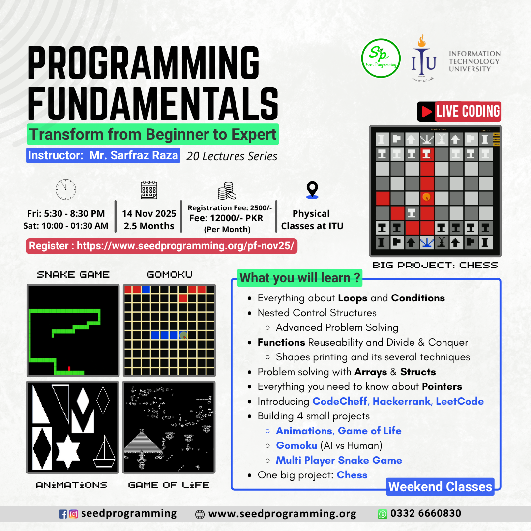 The Course will be taught by Sarfraz Raza (Teaching Fellow – at ITU and the CEO of Seed Programming).