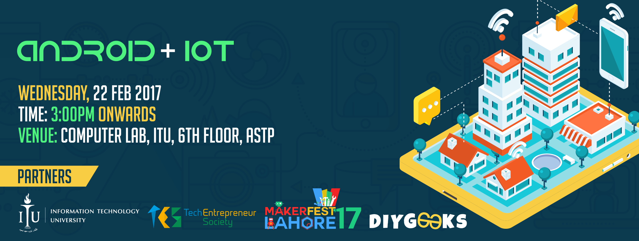 - IoT Workshop: Thursday, 23, Feb, 2017– Timings: 11:45am – 2:45 pm.