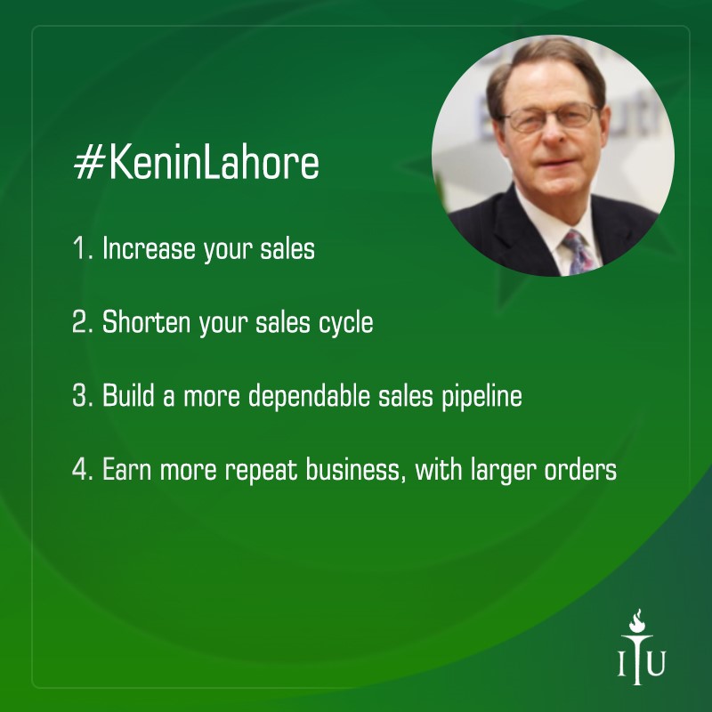 “Global Sales Strategies for Ambitious Pakistani Firms” is a high quality workshop, led by Ken Morse, for Entrepreneurs , CEOs and senior sales executives from innovative, fast growing companies , featuring case studies and lectures, interactive discussions, short movies, participant’s presentations, “hands on” exercises, and the opportunity to practice “elevator sales pitches” to potential customers.