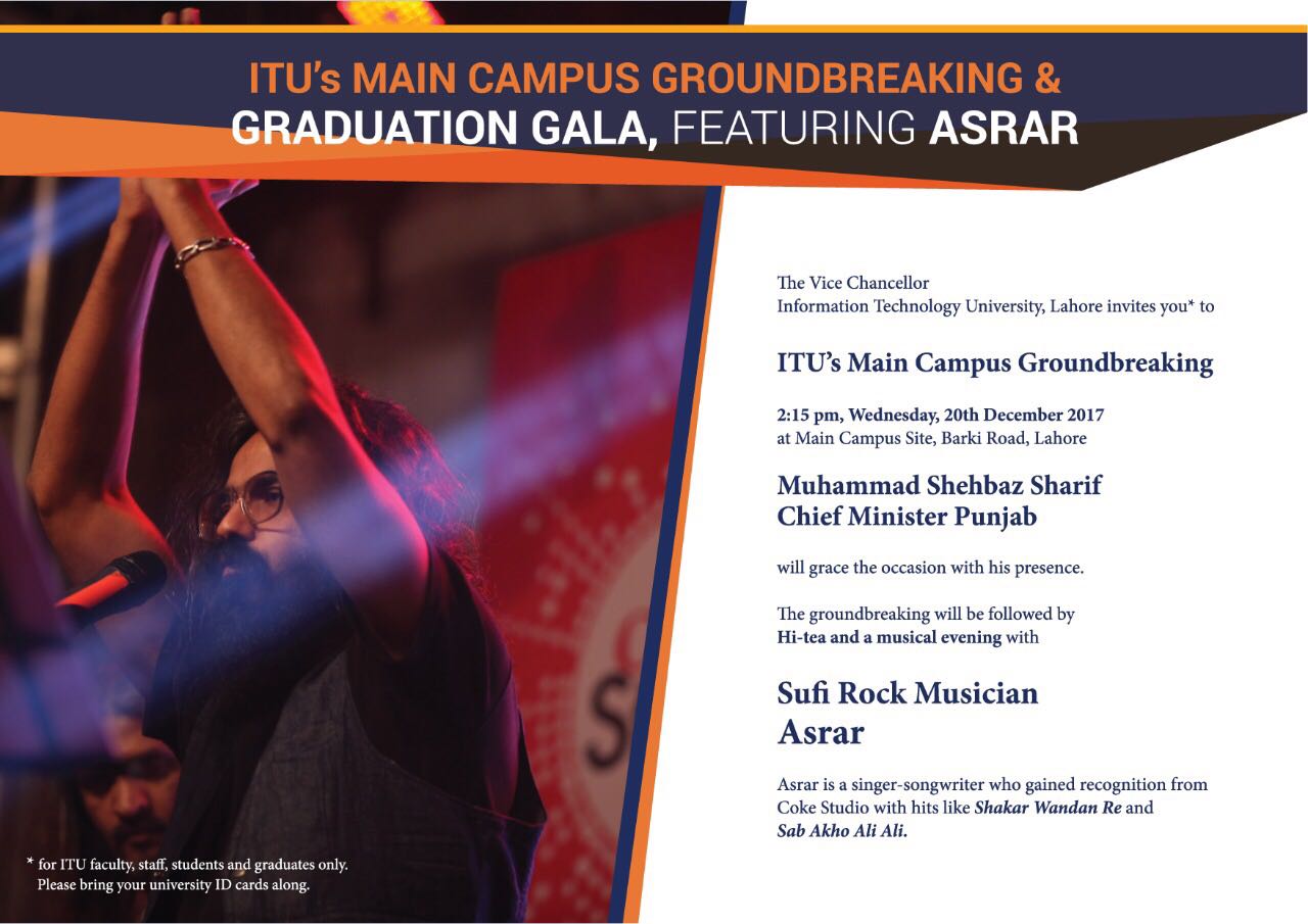 The Vice Chancellor of Information Technology University, Lahore invites you* to ITU’s Main Campus’ Groundbreaking.